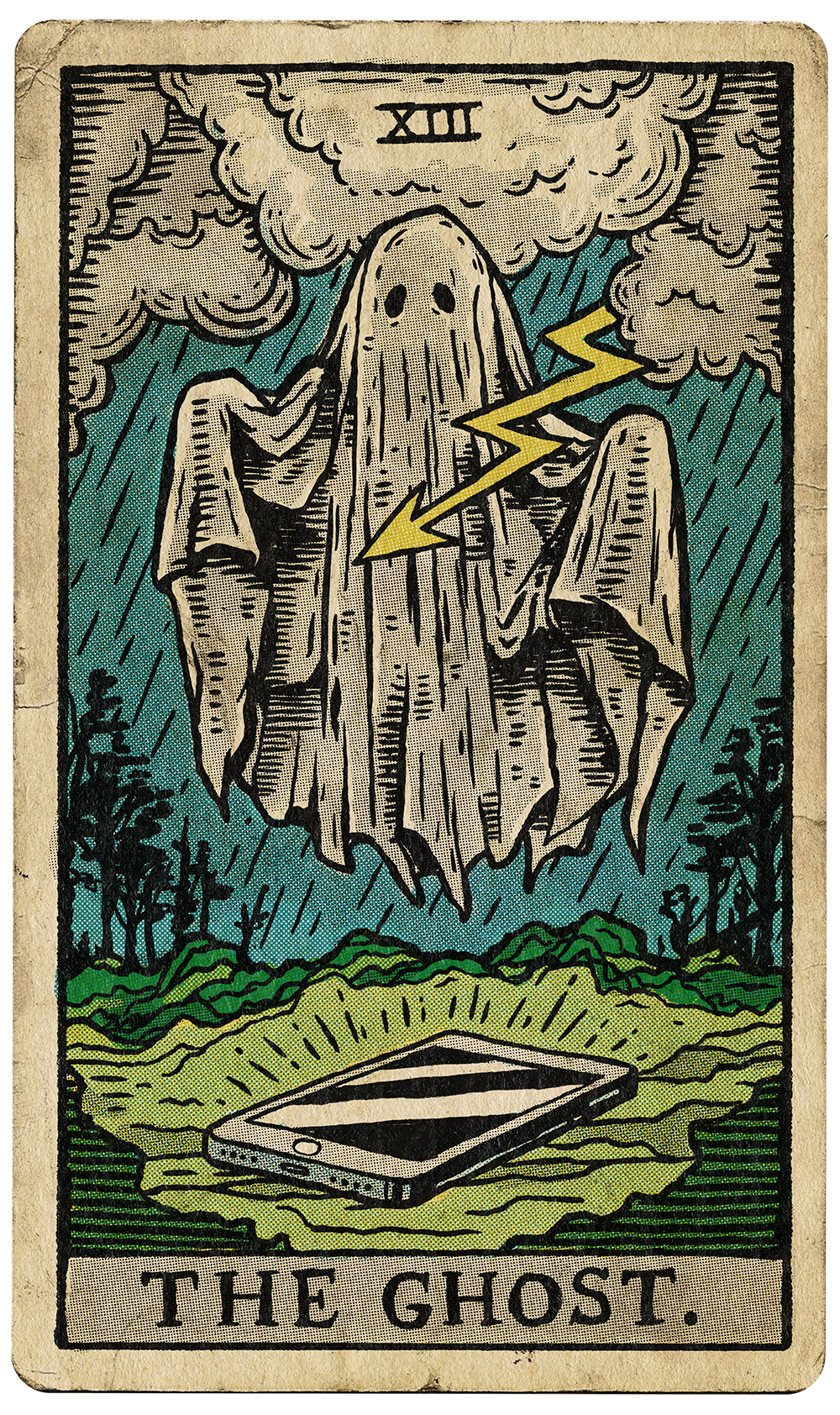 Self-initiated project. The work explores the theme of getting ghosted. A term in online dating. Illustrated as a vintage Rider Waite Tarot card.